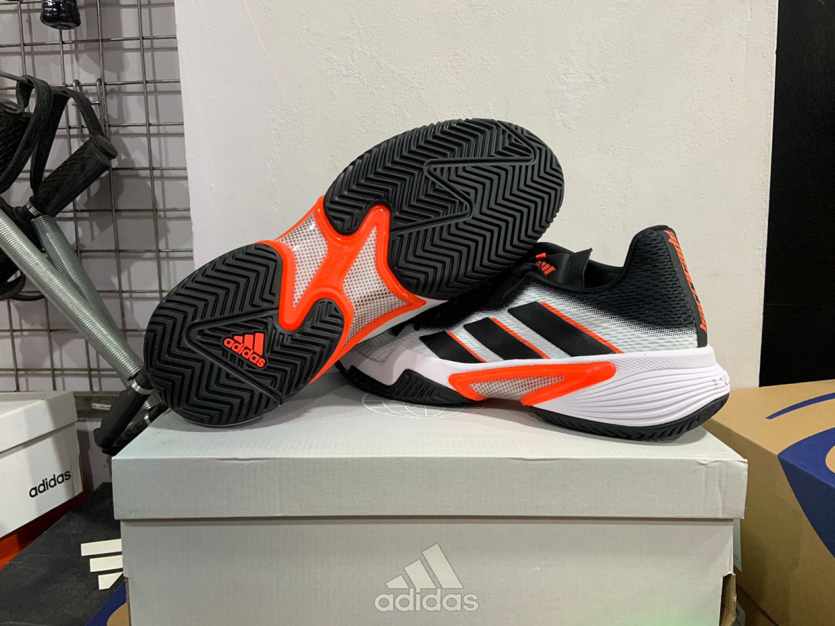 Outsole Adiwear dengan profil herringbone menciptakan keseimbangan sempurna antara traksi dan daya tahan di permukaan lapangan keras.